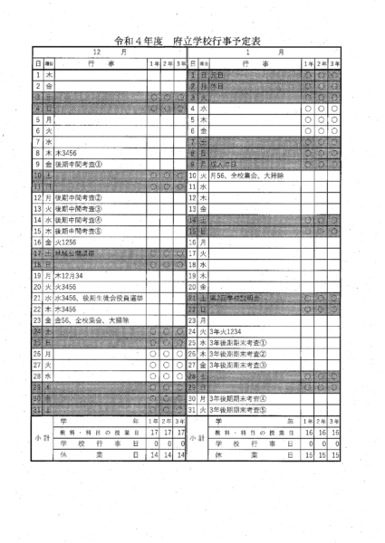 学校閉庁日のお知らせ