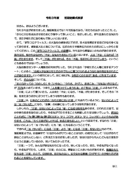 R3前期始業式