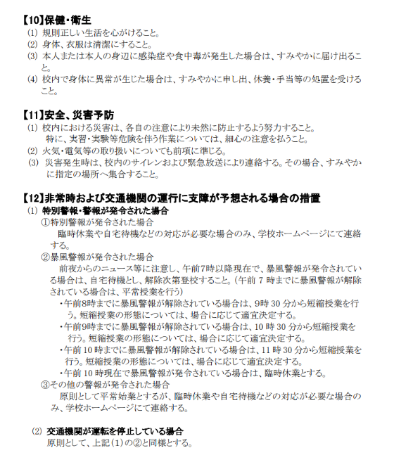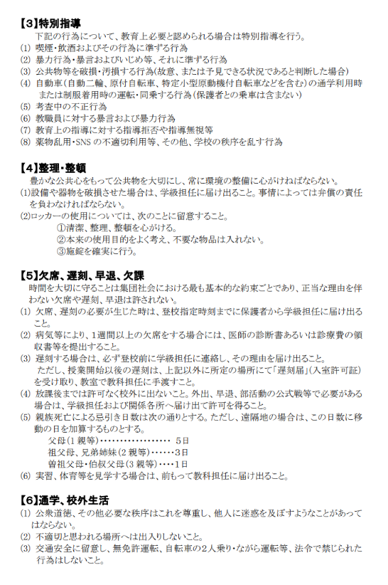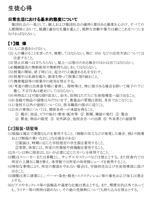 校則「生徒心得(校則)【令和8年1月8日改訂】」