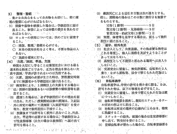 校則「生徒心得(校則)【令和6年5月9日改訂】」